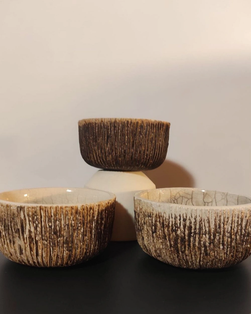 Chaque bol est façonné et texturé dans l’atelier de Violeta, au cœur de la forêt de Brocéliande.